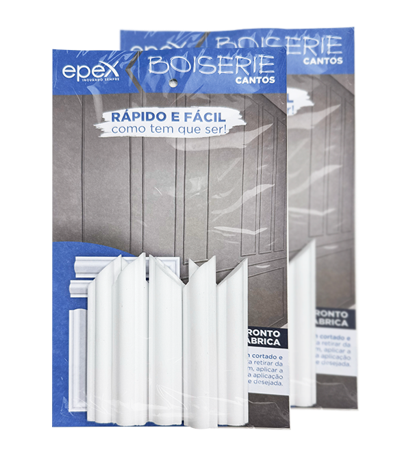 • Durabilidade e Resistência: Assim como a barra de Boiserie Epex, os Cortes em Canto possuem propriedade antimofo, permanecendo firmes e sem manchas mesmo em condições de umidade.