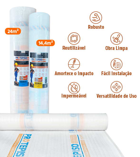 Produzido em polietileno expandido, com 2mm de espessura e com adição de uma cama de tecido não tecido (TNT), o Protepiso ULTRA é a solução ideal para quem busca uma proteção mais robusta e com absorção parcial de líquidos para manter a sua obra limpa e protegida de forma econômica e inteligente.